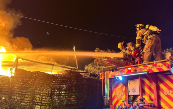 Fuego fuera de control en galpón de residuos